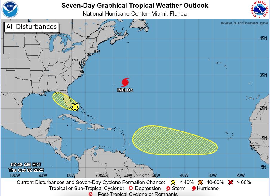 Florida is not in the immediate path of either Humberto or the developing wave, and no direct land impacts are expected at this time. The main hazard for the Eastern U.S. coast is continuing dangerous surf and rip currents from Humberto’s swell. Inland, Florida remains hot, humid, and prone to isolated afternoon storms.