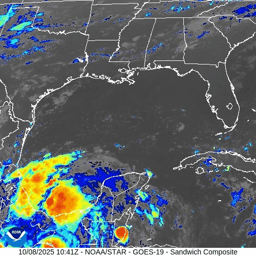 A broad area of disorganized showers and thunderstorms persists over the Bay of Campeche. Some slow development is possible before the system moves inland over southern Mexico. However, the NHC currently assigns it only about a 10% chance of development over both the next 48 hours and 7 days.