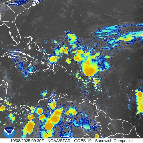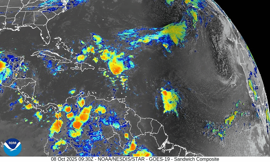 On October 8, Tropical Storm Jerry has formed from Invest 95L in the central Atlantic and continues to strengthen on its west-northwest path toward the Leeward Islands. The National Hurricane Center has also noted a weak disturbance in the Bay of Campeche with only a 10% chance of development. Jerry remains no threat to Florida or the U.S. mainland, though dangerous surf and rip currents may develop along the East Coast as the storm intensifies.