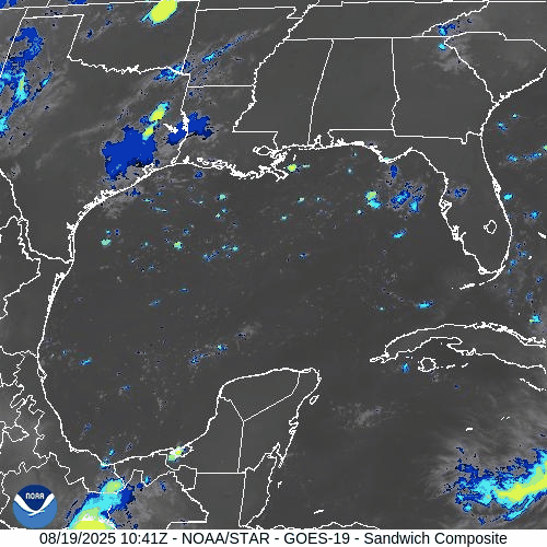 Quiet and stable: There are no organized systems. Activity is limited to isolated afternoon convection along the Gulf Coast, tied to heat-driven storm patterns rather than tropical development.
