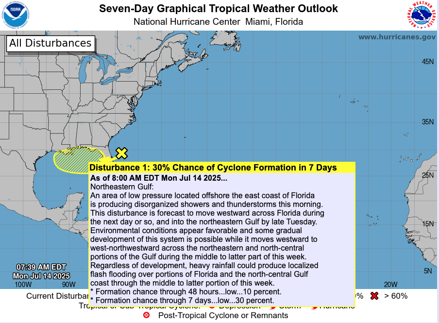 Atlantic Hurricane Outlook – July 14, 2025: Gulf Disturbance Signals Season’s Shift