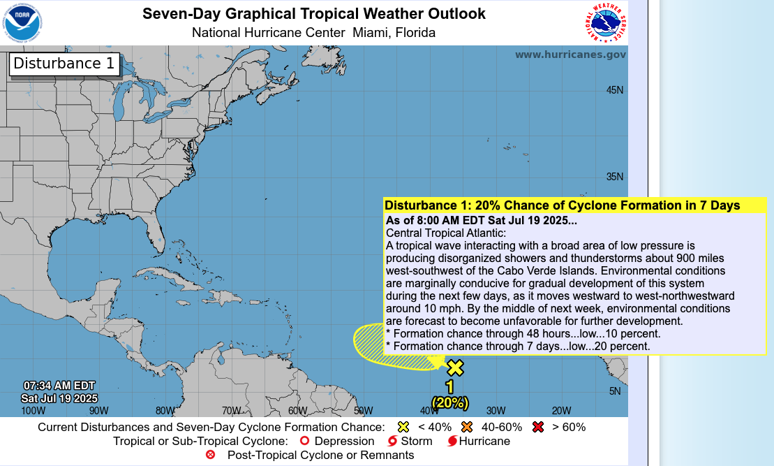 According to the 8:00 AM EDT Tropical Weather Outlook (TWO) from the National Hurricane Center: