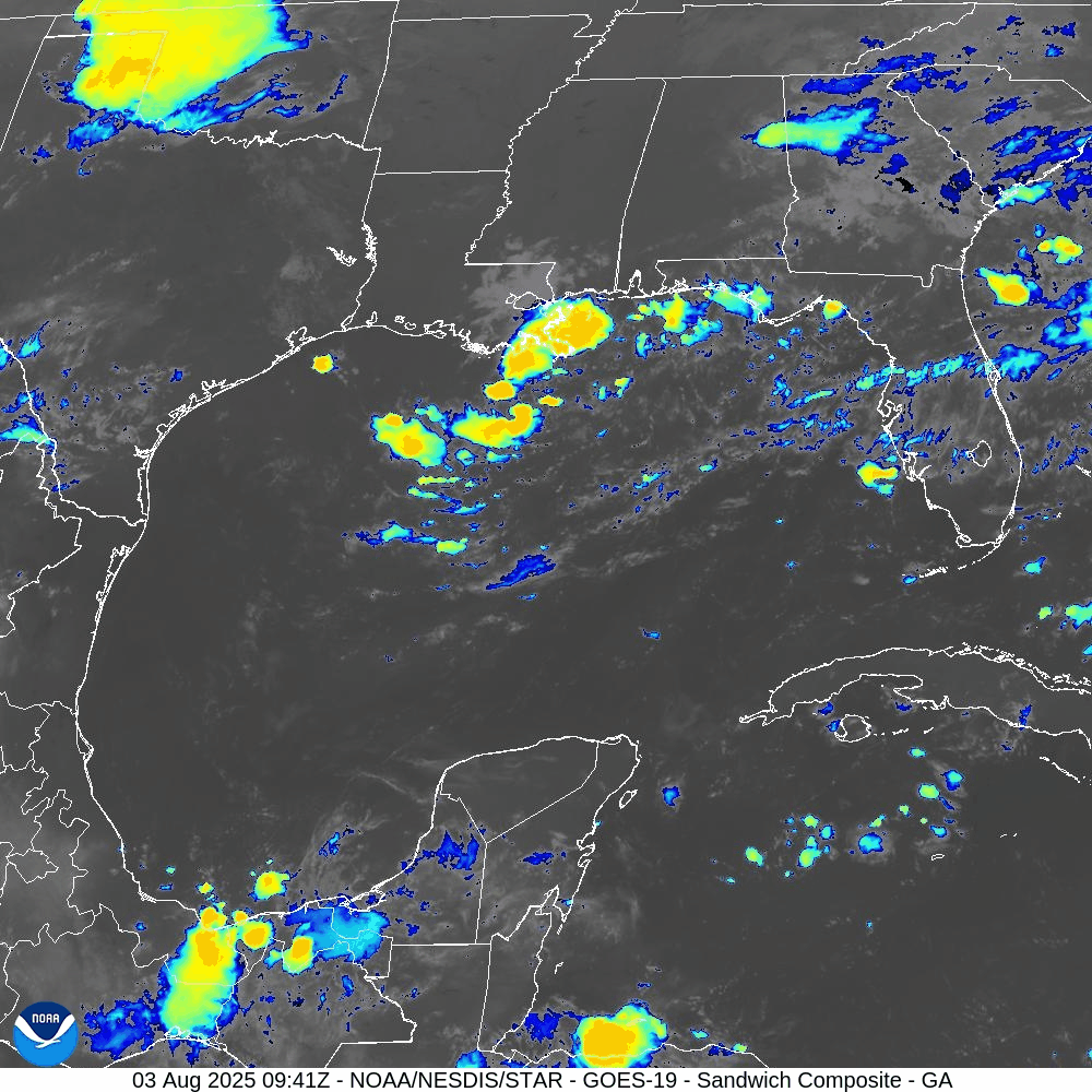 GOES-19 - Sector view: Gulf of America - Sandwich - August 3, 2025