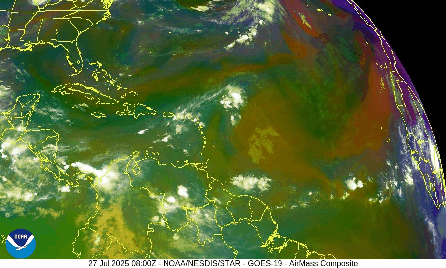 Saharan Air Layer: A large, dry SAL continues to stretch across the central Atlantic, suppressing storm formation east of the Lesser Antilles, but it's expected to weaken by early August.
