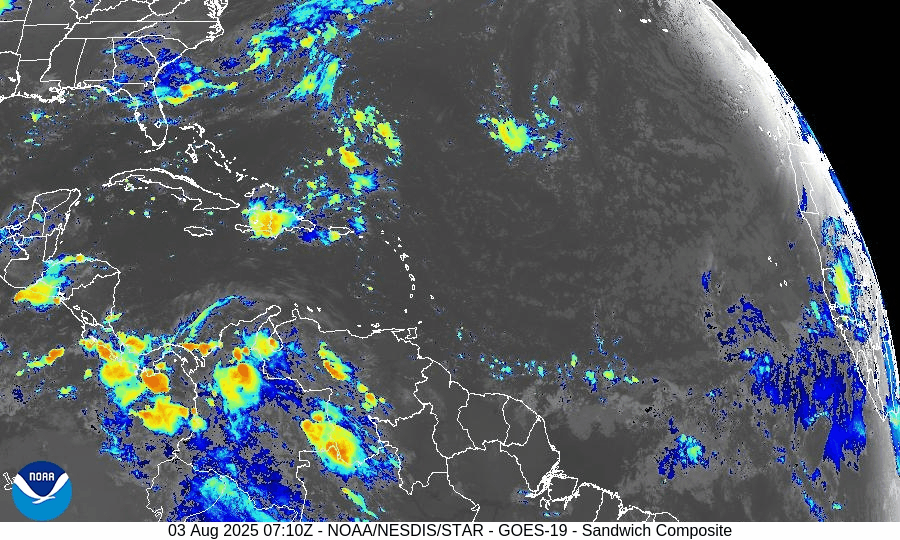 GOES-19 - Sector view: Caribbean - Sandwich - August 3, 2025