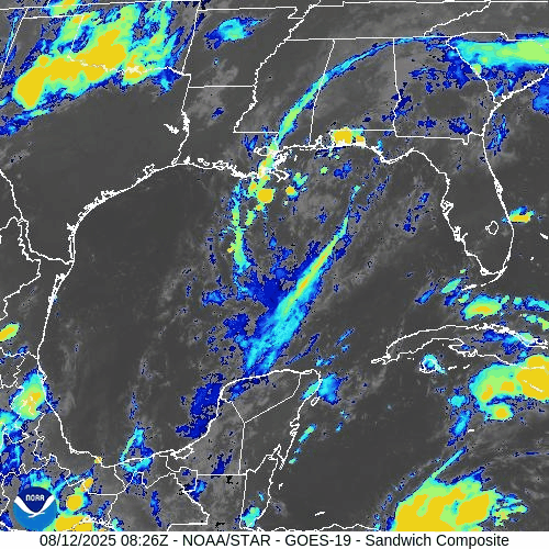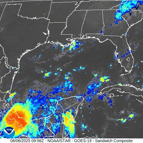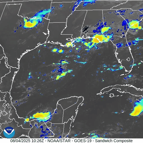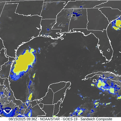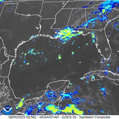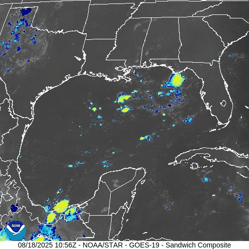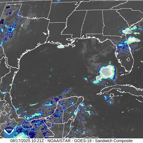 The Gulf remains broadly quiet, with high pressure dominating and keeping conditions mostly stable. While moisture pockets are leading to afternoon thunderstorms, there are no signs of tropical development at this time. Sea surface temperatures are very warm (29–31°C), so the region will continue to be monitored closely heading into late August.