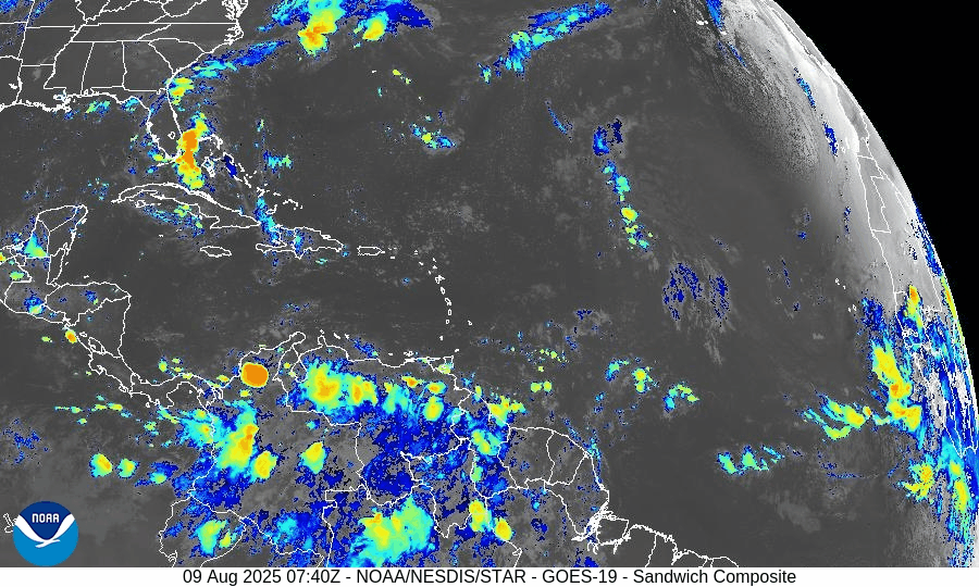The Gulf of America (Mexico) remains quiet, with high pressure dominating. Standard afternoon sea-breeze thunderstorms continue along the coast, but no organized tropical development is expected in the near term. SSTs remain very warm (29–31 °C), making the region climatically conducive to storm formation later in the season.