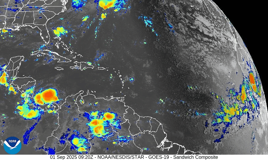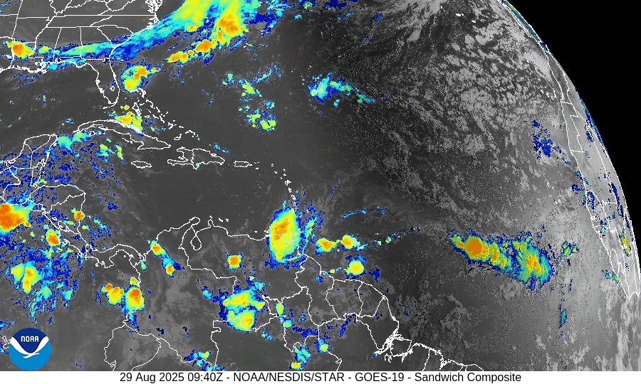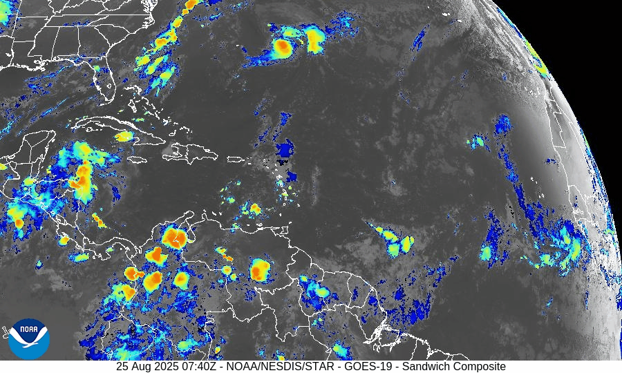 The Gulf of America and Caribbean remain quiet with no tropical disturbances showing organization. Weather across these regions continues to be dominated by standard late-summer patterns: heat, humidity, and scattered afternoon showers.